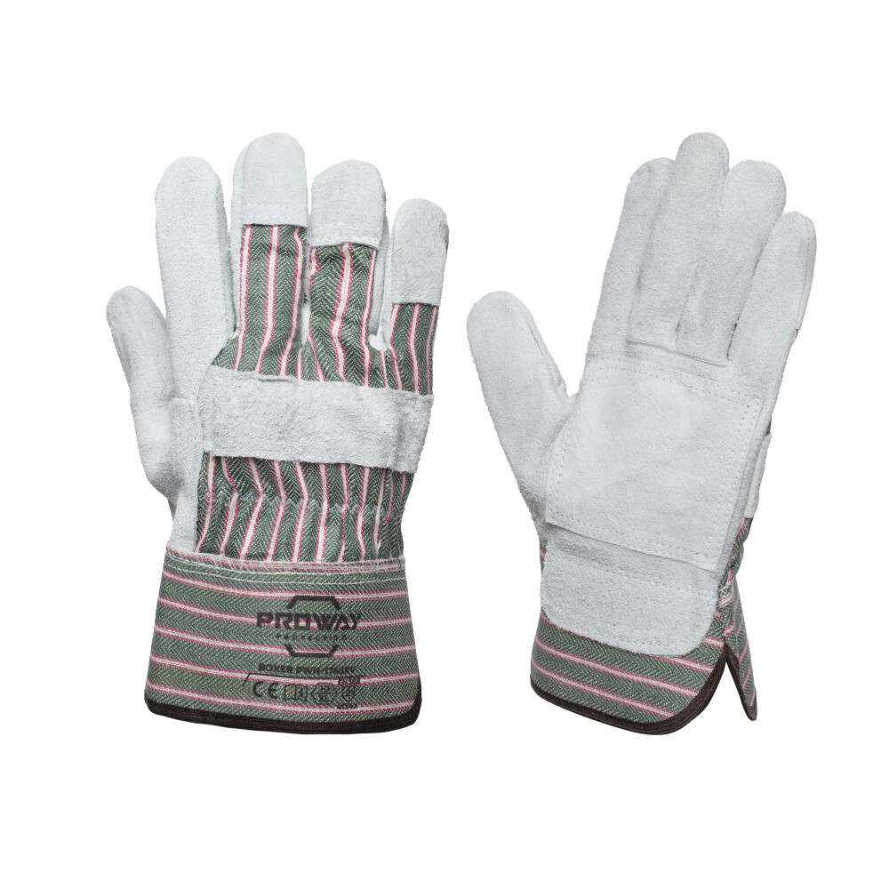De Proway PWH-1746RV is een werkhandschoen uit de Boxer Serie. De Boxer serie bestaat uit authentieke, zeer sterke werkhandschoenen met hoge kwaliteit leder. De PWH-1746RV is gemaakt van A-kwaliteit Rundsplitleder in combinatie met gestreept katoenen doek. Rundsplitleder heeft een goede scheurweerstand, is licht perforatiebestendig en biedt een optimale schuurweerstand. Het katoen zorgt voor een hoog ademend vermogen. De PWH-1746RV is voorzien van een palmversteviging, een strip leder over de handpalm voor extra stevigheid, gerubberiseerde kap van 7 cm. Deze handschoen is uitermate geschikt voor algemene werkzaamheden, laswerkzaamheden, snijwerkzaamheden, luchtvaartindustrie, metaalbewerking, plaatwerk, metaalgieterijen, openbare werken, recycling, scheepvaart, transport, logistiek, wegenbouw, waterbouw, infra. Kies voor de Proway PWH-1746RV en ervaar de duurzaamheid van onze A-kwaliteit lederen handschoenen.