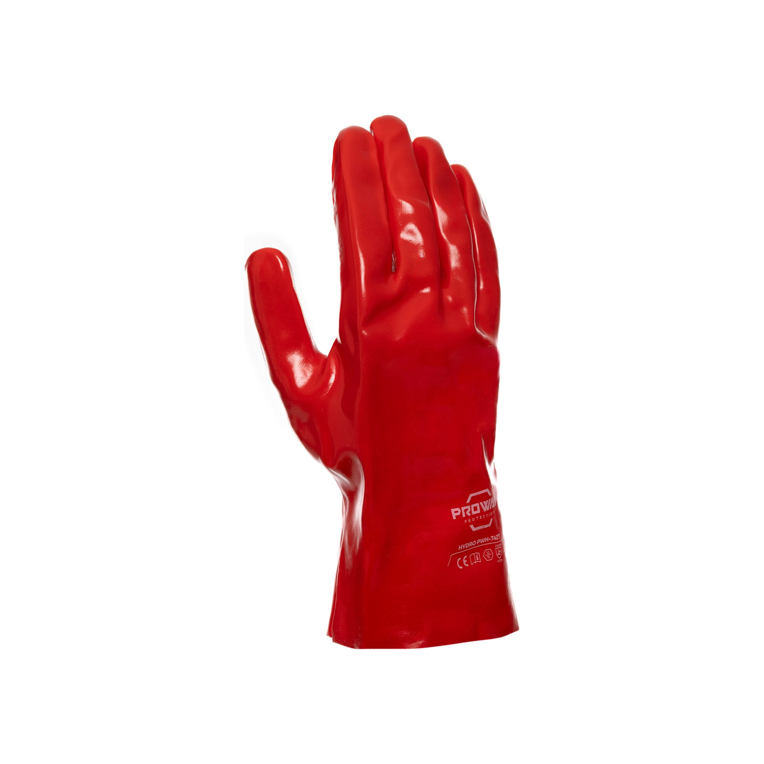 De Proway PWH-7427 is een werkhandschoen uit de Hydro Serie. De Hydro serie maakt werken in natte of vette omstandigheden leuk. De PWH-7427 heeft een interlock liner. Een interlock liner voelt stevig aan en is sterk. Door de opbouw van het materiaal blijft hij ondanks de stevigheid toch rekbaar. De PWH-7427 heeft een rode volledige PVC coating en heeft een totale lengte van 27 cm. Een PVC coating is waterdicht, slijtvast en zorgt voor een goede grip bij werken met zowel olie als vet. De volledige coating zorgt ervoor dat de handschoen waterdicht is.