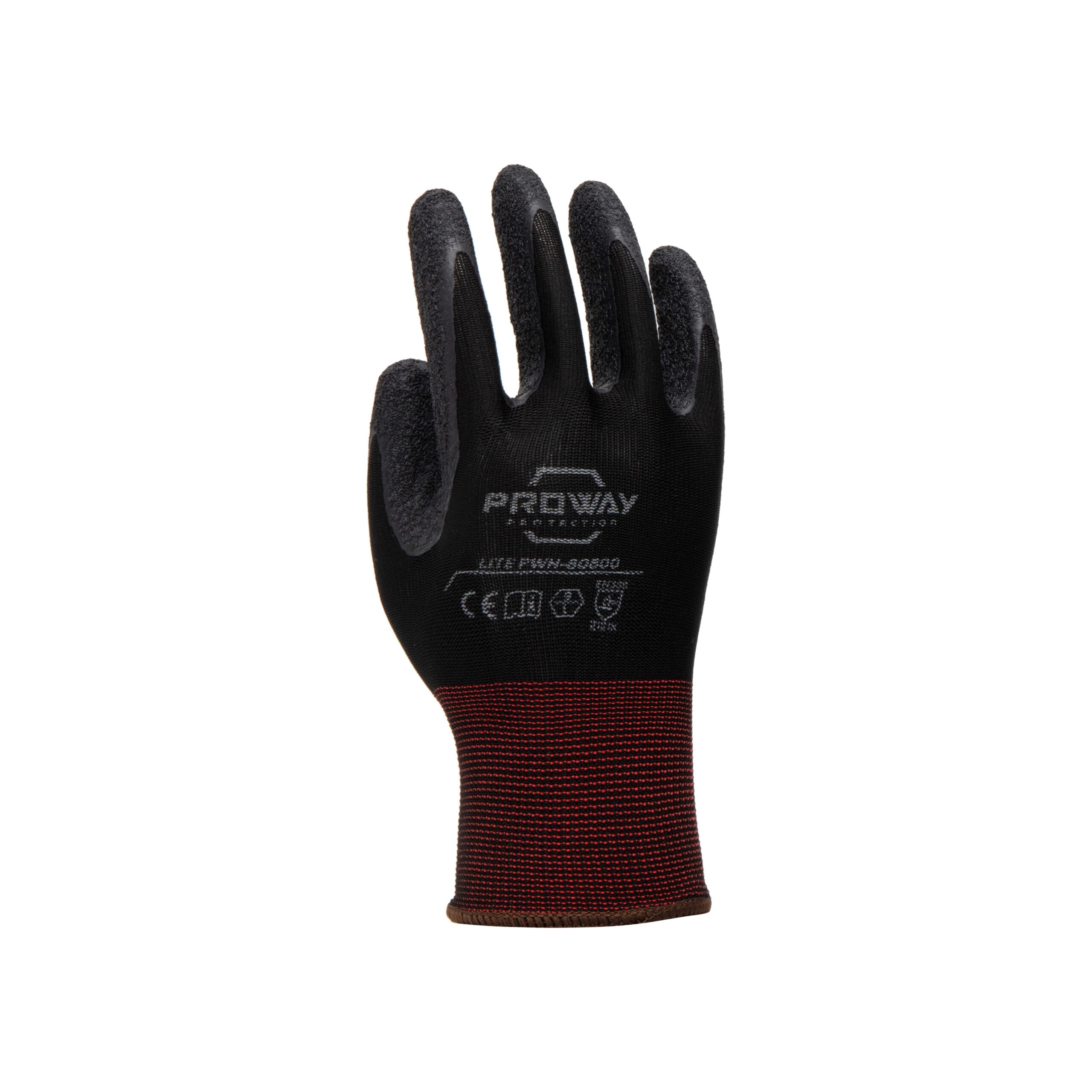 De Proway PWH-80800 is een werkhandschoen uit de Lite Serie. De Lite serie heeft een ideale prijs/kwaliteit verhouding en voldoet aan de nieuwste normeringen. De PWH-80800 heeft een 13G naadloos gebreide liner van Polyester. Een liner van polyester is elastisch, sterk en is bestand tegen slijtage. De PWH-80800 is voorzien van een latex handpalm coating. Een latex coating is flexibel, bestand tegen scheuren en biedt een optimale grip. Deze coating is waterdicht en beschermt in zekere mate tegen zuren en schoonmaakmiddelen.