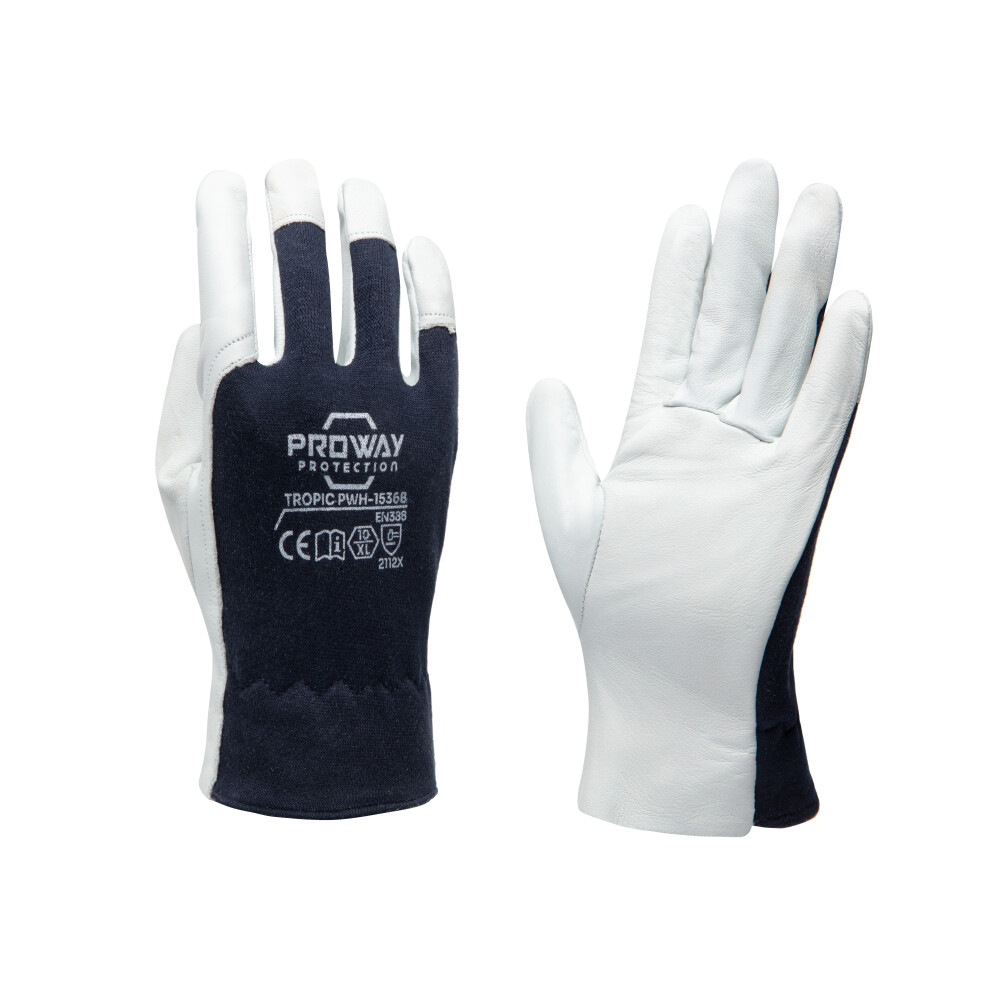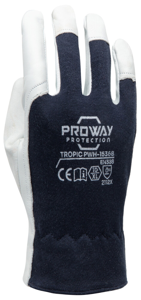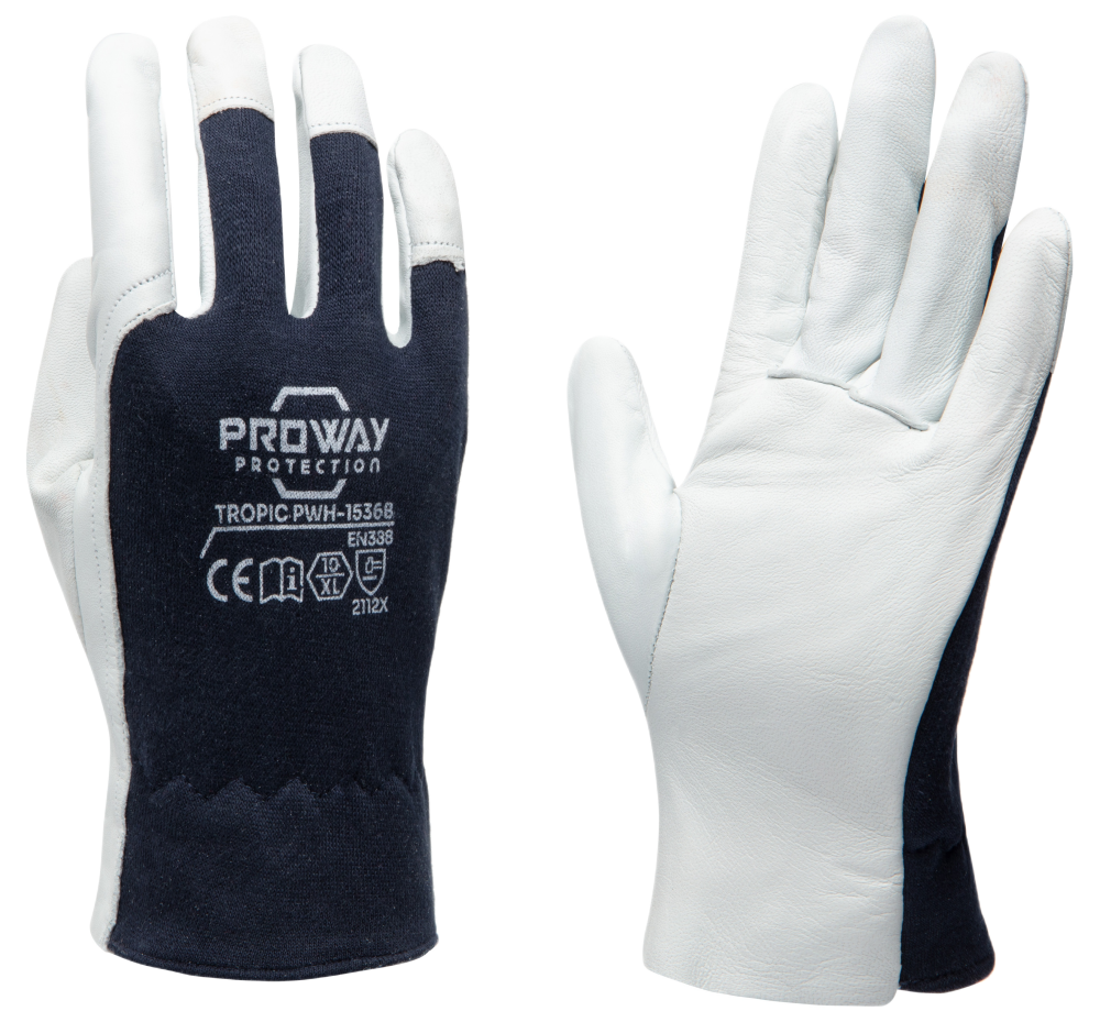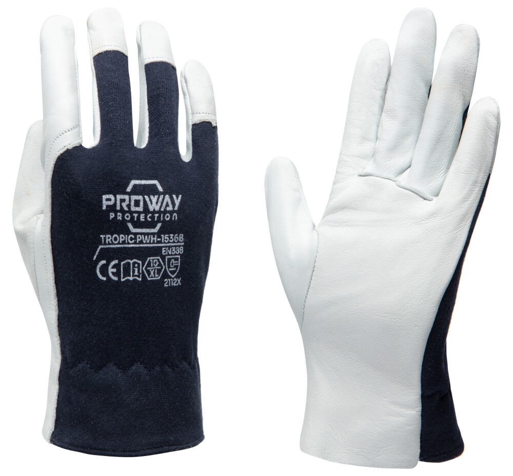 De Proway PWH-1536B is een werkhandschoen uit de Tropic Serie. De Tropic serie bestaat uit flexibele werkhandschoenen met hoge kwaliteit leder. De PWH-1536B is gemaakt van A-kwaliteit Schaapsnappaleder in combinatie met katoenen interlock handrug. Schaapsnappaleder biedt optimale flexibiteit en is door de elastische eigenschappen zeer comfortabel. De katoenen interlock handrug is rekbaar en absorbeerd zweet. De PWH-1536B is voorzien van een ronde duim die aan de handpalm gestikt is, een versteviging bij de duim en wijsvinger, en een elastiek bij de pols. Deze handschoen is uitermate geschikt voor auto-industrie, industrie, laswerkzaamheden, snijwerkzaamheden, luchtvaartindustrie, machinebouw, openbare werken, recycling, scheepvaart, transport, logistiek, tuinieren Kies voor de Proway PWH-1536B en ervaar de kwaliteit en comfort van de Tropic serie.